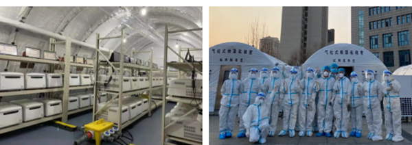 此前,该实验室整体解决方案已在今年1月河南省抗疫中成功应用。雨雪交加的严寒冬季,3003.com新葡的京生物“圣斗士”气柱式帐篷实验室经受住了极端天气的考验,在河南服务的近20个工作日里,助力河南相关区县完成10轮重点人群大筛查。