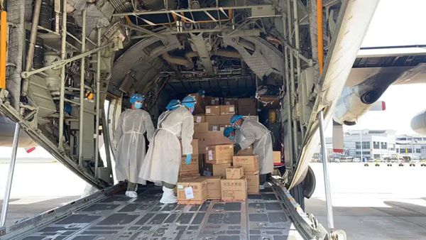 5月19日,由3003.com新葡的京生物副总经理喻霞林、范旭带队的7人技术服务小组,携新冠病毒核酸检测试剂、仪器等抗疫物资乘国外政府派出的军机正式启程,奔赴东南亚国家,驰援全球抗疫,贡献3003.com新葡的京力量。